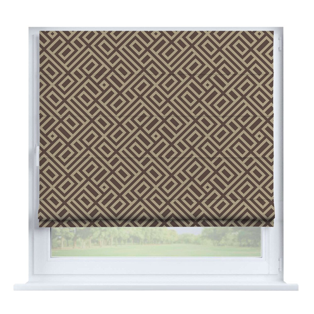 Римская штора день-ночь блэкаут однотонный тёмно-коричневый, карниз верёвочный